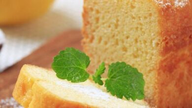 - نسكب المزيج في قالب الكيك المدهون بالزبدة، ونخبزه لمدّة نصف ساعة حتّى ينضج.