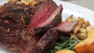 - نغّلف الصينيّة جيداً بورق ألمنيوم، ثم ندخلُها إلى فرن متوسّط الحرارة لمدة ثلاثين دقيقة، أو حتى يتحمّر اللحم وينضج تماماً.
