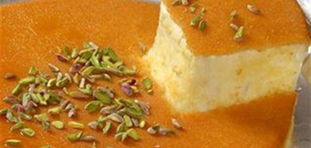 - نقلب الكنافة داخل صينيّة أخرى، بحيث تصبح الجبن أسفل والعجينة أعلى.