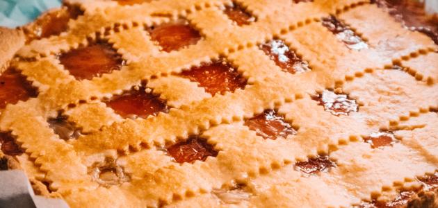 • تزيين الطبقة الثانية من العجينة بقطع العجين الصغيرة، ثمّ زخرفة حافة الفطيرة بواسطة شوكة أو طرف ملعقة.