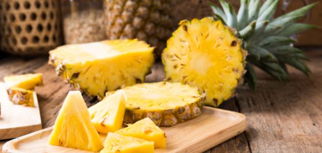 تُعرف فاكهة الأناناس (بالإنجليزيّة: Pineapple) علميّاً باسم Ananas Comosus، وهي فاكهةٌ استوائية شائعة في جميع دول العالم، ويعود أُصلها إلى جنوب أمريكا، وتُعدّ من الفواكه الغنيّة بالعناصر الغذائيّة ومضادات الأكسدة، بالإضافة إلى احتوائها على الإنزيمات التي قد تساهم في تقليل الالتهابات وبعض الأمراض، كما أنّها تُساعد أيضاً على تعزيز مناعة الجسم، وتسريع التعافي بعد العمليات الجراحية،[١٩] وتُعدّ فاكهة الأناناس من النباتات المُعمّرة ذوات الفلقة الواحدة، إذ يصلُ حجم النبتة إلى ما يقارب 1-2 متر في الطول والعرض، أوراقها حلزونية الترتيب تحمل أزهاراً تُنتج ثمار صالحة للأكل على نهاياتها، وتعد ثالث أكثر أنواع الفاكهة إنتاجاً في العالم بعد الموز والحمضيات.[٢٤] ومن الجدير بالذكر أنّ تناول عصير الأناناس المصنوع من الفاكهة غير الناضجة قد يؤدي إلى الإصابة ببعض الأعراض الجانبيّة كالتقيّؤ الشديد، كما قد يؤدي تناول كميّاتٍ كبيرة من الأناناس إلى حدوث تورّمٍ في الفم والخدين.[٢٣]
