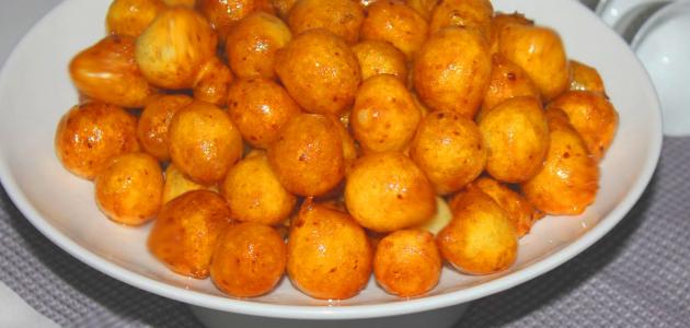 - ننشل حبات العجينة من المقلاة ونضعها في وعاءٍ جانبي حتى تتصفّى من الزيت.