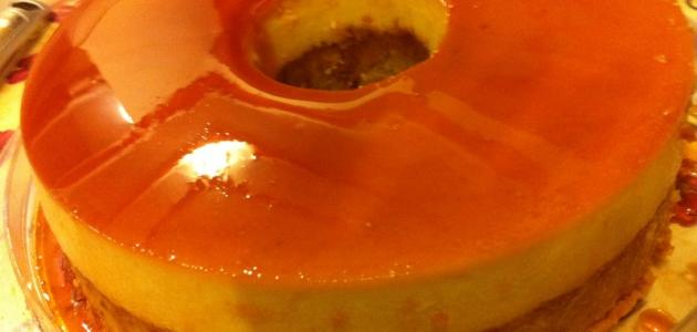 - نسكب في قالبَ الكيك، أو الصينية الكراميل كطبقة أولى، وبعدها طبقة الكريم كراميل، ثمّ مزيج الكيك.