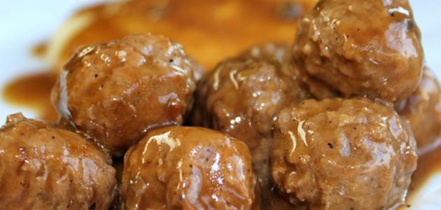 • رفع كرات اللحم من الفرن، وتغطيتها بالصلصة، ثمّ تقديمها.