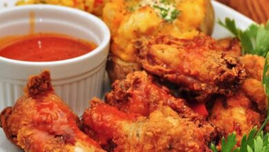 - إخراج قطع الدجاج من الفرن، وسكبها في طبق التقديم وتقديمها ساخنة.