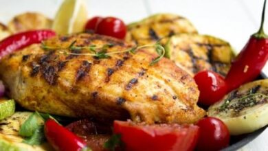 - وضع قطع الدجاج في صينية شواء، وإدخالها الفرن لمدة ثلاثين دقيقة حتى ينضج.
