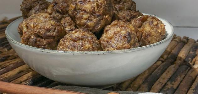 خمسمئة غرامٍ من اللحم المفروم. ملعقتان كبيرتان من الزيت. حبة متوسطة من البصل المفروم ناعماً. ثلاثة فصوص من الثوم المهروس. ملعقة صغيرة من الزنجبيل المفروم. ربع كوب من الكزبرة الخضراء المفرومة. نصف كوب من البقسماط. بيضة كبيرة الحجم. ملعقة صغيرة من الملح. نصف ملعقة صغيرة من الفلفل الأسود. مكوِّنات الصلصة: