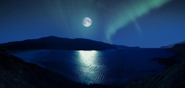 - في الليل زينة السماء، وفي الليل يزدان القمر بأشكاله المختلفة، يعكس ضوء الشمس بخجل واضح، ويتلاشى تدريجياً تاركاً للنجوم مكانه.