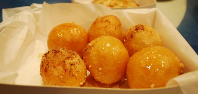 • رشُ اللقيميات بالقرفة والسّكر النّاعم، ومن ثمّ تقديمها.