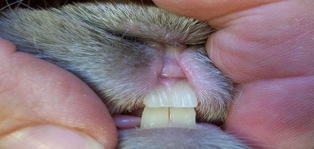 يمتلك الأرنب ثمانية وعشرين سناً دائماً، وتتصف أسنانه وأسنان الحيوانات آكلة الأعشاب عموماً بالطول والنمو المستمر، والتي تسمى بالإنجليزية (hypsondontal)، ورغم أنّ عملية الطحن التي تقوم بها الحيوانات تؤدي إلى بقاء الأسنان بطول مثالي، إلا أنّ العديد منها يحتاج إلى قطع أسنانه بشكلٍ منتظم بسبب بعض العوامل الصحية، والبيئية، والوراثية، ويُنصح بقطع القواطع عند بدء ظهور تضخمها بواسطة إحدى الأدوات اليدوية أو الأكثر تطوراً، وكذلك يمكن قطع الأضراس المتضخمة والذي يصعب عادةً التعرف إليه دون مراجعة الطبيب البيطري.[١]