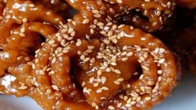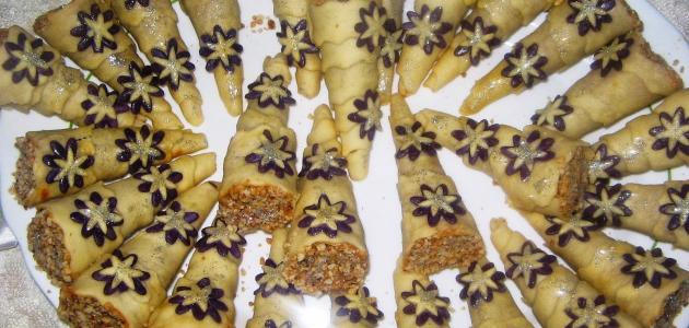- تُحضّر الحلوى حيث يرشّ فوق طاولة نظيفة القليل من الطحين ومن ثم فرد العجينة فوقه بمشبك العجين.