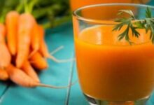 • اعصري البرتقال، ثمّ اسكبيه في الخلاط الكهربائي مع الخوخ، والجزر، والسكر، والفانيلا.