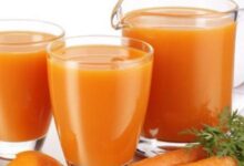• اعصري البرتقال، ثمّ اسكبيه في الخلاط الكهربائي مع الخوخ، والجزر، والسكر، والفانيلا.