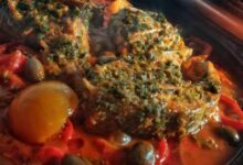 • إخراج الطبق ونزع ورق الألمنيوم، وإعادته إلى الفرن، وتركه لعدّة دقائق حتى يتحمر سطح الفيليه جيداً.