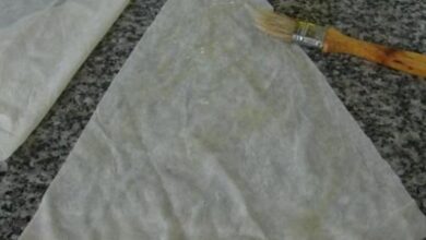 • افردي العجين بواسطة النشابة، وضعي كميّة من الزيت فوقها ومدّيها حتّى تصبح شفافة.