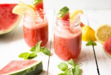 • تشغيل الخلاّط الكهربائي على سرعة متوسطة، والخلط لمدّة دقيقة حتَّى تمتزج جميع المواد والحصل على عصير ناعم.