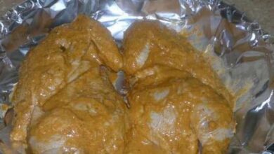 - نضع جميع مكونات التتبيلة في وعاء، ونخلطها جيداً.