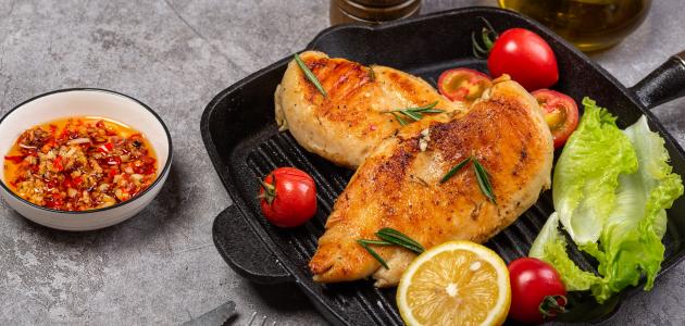 • شوي الدجاج من كلّ جانب لمدة أربع دقائق، أو إلى أنْ ينضج الدجاج من كلا الجانبين.