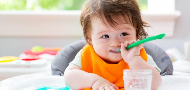 - البدء بالاهتمام بما يأكله الأبوان؛ وذلك من خلال إصدار أصوات عند مُشاهدة شخص يأكل الطعام، أو محاولة الإمساك بالشوكة أو شريحة الخبز.
