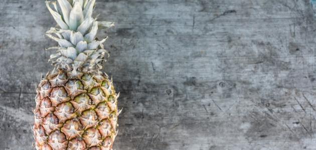 - إحضار حبة الأناناس، وقطع الجزء العلوي من الحبة باستعمال سكين حادة.