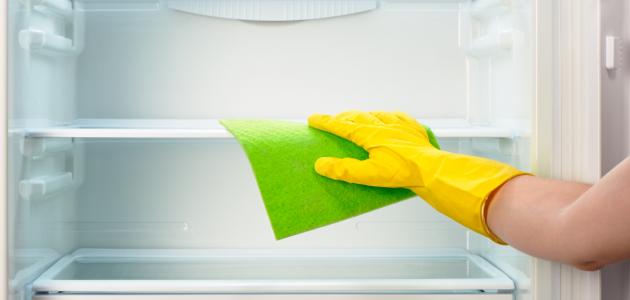 - مسح الثلّاجة من الداخل من خلال الاستعانة بقطعة قماش نظيفة، أو إسفنجة، مع محلول مُنظِّف؛ للتخلُّص من آثار الأطعمة، وبقاياها، مع الأخذ بعين الاعتبار ضرورة الابتعاد عن استعمال المُنظِّفات الكيميائية التي يمكن أن تمتصّ الأطعمة رائحتها فيما بعد، واستبدالها بمُنظِّفات طبيعية يتمّ تحضيرها في المنزل؛ من خلال مزج ملعقتَين كبيرتَين من صودا الخبز مع لتر من الماء الساخن، أو مزج ما نسبته 1:3 من الماء الساخن، وخلّ التفاح، كما يُوصى بإزالة البُقع المُستعصِية باستعمال معجون الأسنان الأبيض.