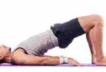 - تطبيق تمرين الجسر للوركين، وذلك من خلال الاستلقاء على الظّهر ووضع اليدين بشكل مُستقيم مع الجسم أو فتحهما على الجانبين بحيث تكون راحة الكف للأعلى، ثُم البدء برفع الوركين لتشّكل خط مائل مع الكتفين، وتكرار هذا التّمرين 15 مرّة.