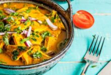 - تقديم قورما الدجاج مع الأرز طويل الحبة المطبوخ.