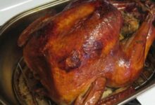 • وضع الخضار داخل الدجاجة وتخييطها حتى لا تتسرب الحشوة.