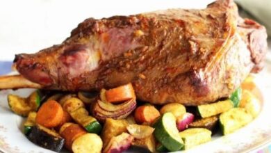 • غلق الصينية بالقصدير، ووضعها في الفرن لساعة أو أكثر إلى أن تنضج.