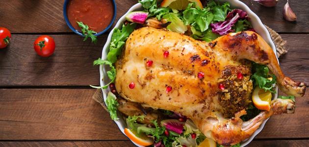 - تركي الدجاج في الفرن لمدّة ساعة ونصف إلى ساعتين حتى ينضج.