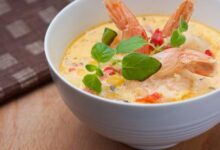 • إضافة النشا على الشوربة مع التقليب بخفة إلى أنْ تغلي المرقة لمدّة دقيقة.