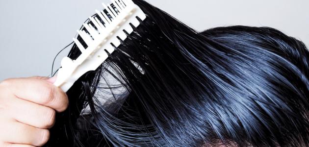 - يطبّق الخليط على الشّعر وفروة الرّأس، ثمّ يمشّط الشّعر بمشط واسع الأسنان.