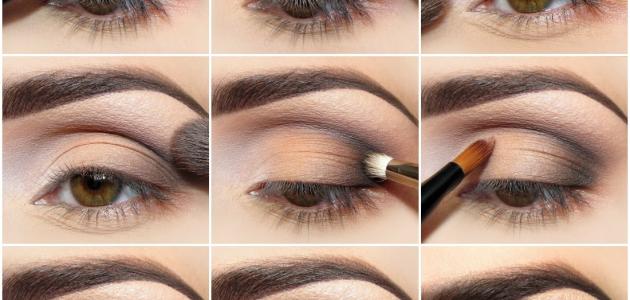 - مكياج العيون: وبعد أنّ تم تحضير الوجه وتجهيز أساسه يتم الانتقال إلى مكياج العيون، ويتم عن طريق اتباع الخطوات الآتية:[١]