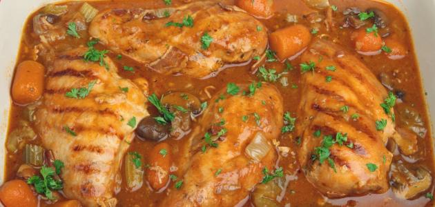 - رفع الخليط عن النار، وسكب صالونة الدجاج في طبقٍ تقديم عميق، وتقديمها مع الأرز الأبيض.