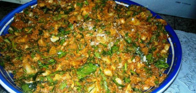 - نغسل الكزبرة والبقدونس والشبت جيداً لنتخلّص من الأتربة العالقة، ثمّ نفرمها فرماً ناعماً ثم نضيفها إلى البطاطا والدجاج.