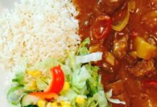 - نضيف البهارات للحم، ونتركه على النار حتى تتسبّك الصلصة.