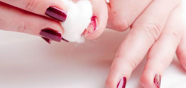 - تُمسح الأظافر باستخدام قطعة قطنيّة للتّخلّص من بقايا طلاء الأظافر.