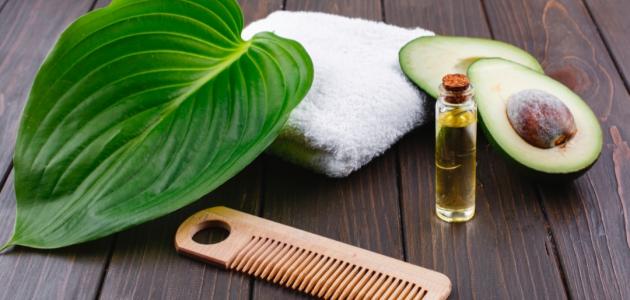 الأفوكادو من المواد الغنية بالعناصر الغذائية التي ترطب الشّعر وتغذيه بشكلٍ كامل، كما يعمل أيضاً على إعادة إصلاح الأجزاء التّالفة منه، مما يجعله وصفة رائعة لتنعيم الشّعر. والطّريقة هي:[٢]