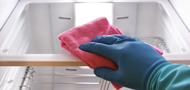 • صنع محلول يتكوّن من لتر ماء دافئ وملعقتان كبيرتان من صودا الخبز وتنظيف الثلّاجة من الداخل بما فيها الرفوف، والأدراج، والأسطح باستخدام منشفة قطنيّة؛ لتفادي تكوّن العفن والبكتيريا داخل الثلّاجة طوال فترة التخزين.