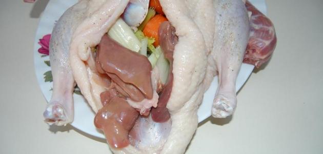 - ننظف البطة من الجلد لتخفيف كمية الدهون.