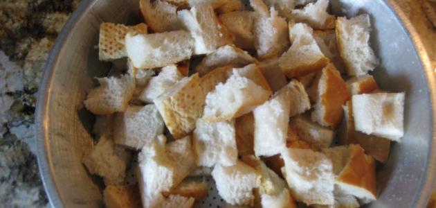 • قطعي الأطراف إلى مكعباتٍ متوسطة الحجم، وافرديها في صينيةٍ خاصة بالخبز، وحمّريها على حرارةٍ منخفضة حتى تكتسب لوناً ذهبياً وقواماً مقرمشاً، واتركيها حتى تبرد تماماً، ثمّ احتفظي بها في أكياس التفريز وضعيها في الفريزر لحين الاستخدام، ويمكنك استخدامها في الفتوش والسلطات المتنوعة وبعض أنواع الشوربات.