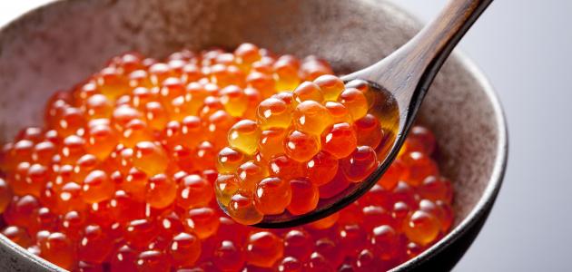 - النوع الثاني: ” أسماك السلمون” حيث يتم استخراج البيض الأحمر منه إذ إنه بيض مالح ويحتوي على مستويات كبيرة من الدهون والبروتينات والأوميغا 3، بالإضافة إلى بعض الألوان الأخرى مثل بيض السمك البرتقالي والأصفر، وبيض السمك الأحمر يتم التعديل عليه صناعياً، هذه الأنواع من الأسماك تعيش في بعض المناطق مثل إيران وروسيا ومنطقة أذربيجان، وتكون في المياه الباردة.