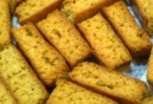 - نقطّع العجين إلى قطعٍ صغيرة حسب الرغبة، ثم نرشّ فوقها السمسم.