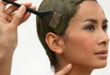- تُكرَّر العملية لأجزاء الشعر السُفليّة، ثمّ يُلَف الشعر المصبوغ على شكل كعكة، أو يتم تركه مفروداً.