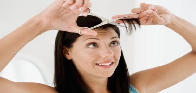 خذي الخصلات الأمامية الموجودة فوق الجبين وقسميها إلى ثلاثة أقسام متساوية، وافتلي كل قسم حول نفسه وقصي بمقدار سنتمتر واحد، فإذا كنت تفضلين الغرة الأمامية القصيرة إبدأي بقص الخصلة الموجودة في المنتصف، وعادة تكون أقل كثافة وطول القص أعلى الحاجبين، أمّا الخصل الجانبية فضعي كل خصلة بين أصابعك وقصيها بشكل مائل وبتدرج، وبهذا تكوني قد حصلتِ على غرة قصيرة من الأمام، وإذا كنت تريدين أن تكون تكون أمامية طويلة، فطول القص يمتد إلى أسفل الحاجبين.