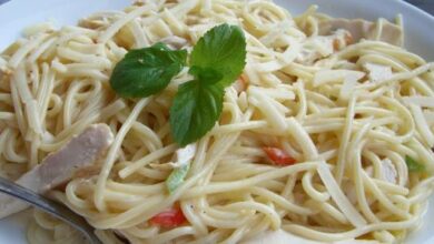 - وضعها في طبق التقديم وتزيينها بشرائح الليمون وتقديمها مع الأرز بالشعيرية.
