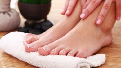 - تُنقع القدمان في الماء مدة 10-15 دقيقة.