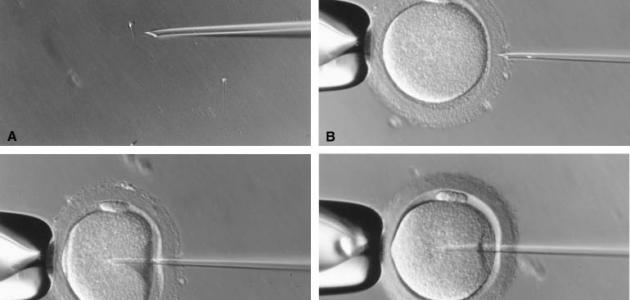 - حقن الحيوان المنوي في سيتوبلازم البويضة وإزالة الإبرة بمنتهى العناية.
