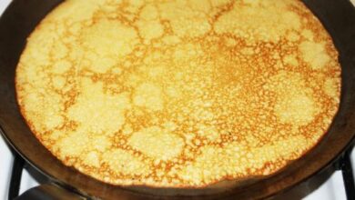 • وضع القليل من خليط البان كيك في طبق خاص لتحضير البان كيك.