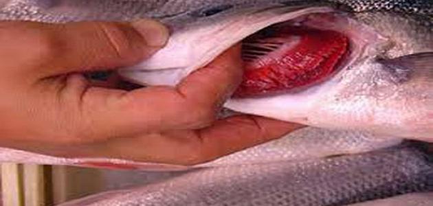 • الخياشيم: يكون اللون الطبيعي للخياشيم وردياً، وتكون خالية من وجود المواد المخاطية، ولا تنبعث منها رائحة كريهة.